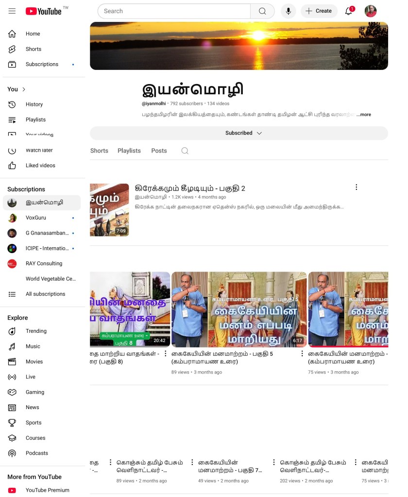 தமிழ் சங்க இலக்கியம் முதல் தற்கால இலக்கியம் வரை; சமூகம் மற்றும் அறிவியல்; தொல்லியல் மற்றும் வரலாறு என பல்வேறு தகவல்களையும், பயணங்களின் மூலம் நேரடியாக கண்டவற்றையும் தொகுத்து காணொளி வாயிலாக வழங்கும் தளம்.